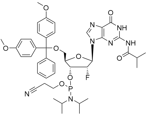中文名称:5'-O-DMT-2'-氟-N2-异丁酰基-2'-脱氧鸟苷3'-CE亚磷酰胺