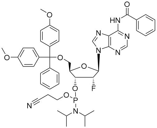 中文名称:N6-苯甲酰基-2'-脱氧-5'-O-DMT-2'-氟腺苷3'-CE亚磷酰胺