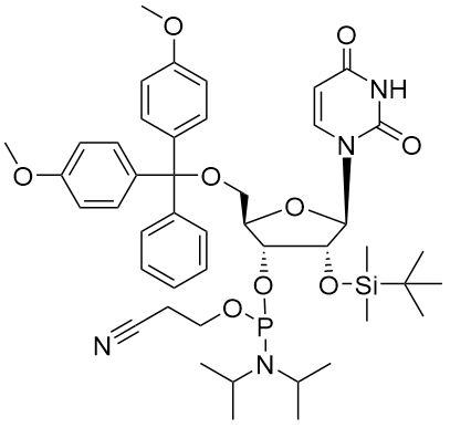 中文名称:5'-O-DMT-2'-O-叔丁基二甲基甲硅烷基尿苷3'-CE亚磷酰胺