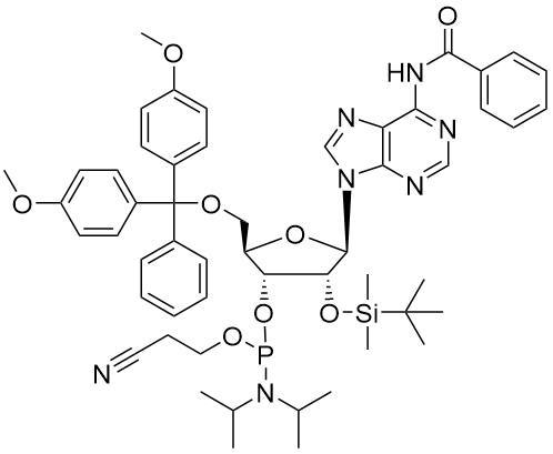 中文名称:5'-O-DMT-2'-O-叔丁基二甲基甲硅烷基-N6-苯甲酰基腺苷3'-CE亚磷酰胺