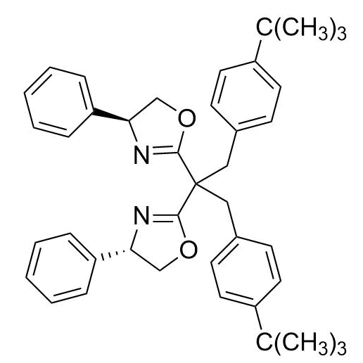 中文名称:(4S,4'S)-2,2'-(1,3-双[4-(叔丁基)苯基)丙烷-2,2-二基]双(4-苯基-4,5-二氢恶唑)(S)-BTBPh-SaBOX